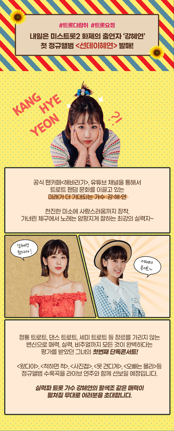 팬 여러분들의 성원에 힘입어 강혜연 님 데뷔 이래 첫 단독 콘서트가 개최됩니다.